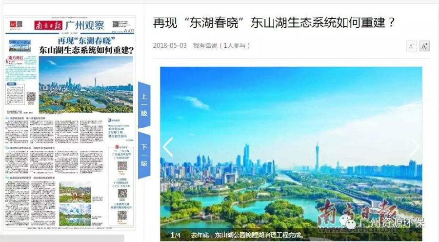 近日《南方日报》对东山湖进行深入走访,整版报道了东山湖重建生态系统的过程,寻找出可持续发展的治理答案,探索出湖泊治理新路径。下面是我们对全文的转载。